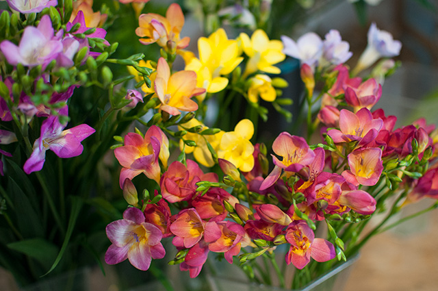 石川県オリジナル品種のフリージア「エアリーフローラ」が地元のみならず、県外にも人気が広がっています。フリージアは一般的に黄色ですが、エアリーフローラは7色あります。花には疎い私でも、そのキレイな色に魅かれてしまいます。昨年3月の北陸新幹線開業時に、金沢駅に飾られたことも記憶に新しいのではないでしょうか。