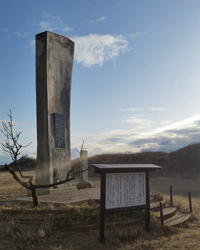 千里浜なぎさドライブウェイの端っこに、大伴家持が詠んだとされる歌が刻まれた石碑があります。ご存知ですか? というより大伴家持って誰?ってことから。「おおとものやかもち」。その一番の業績は『万葉集』の編纂です。説明すると「あ~」となりますね。北陸にゆかりがある人で、少納言となって京に戻るまでの、29歳ごろからの約5年間は越中の国守として赴任しているのです。そのため、富山県高岡市の高岡駅前には大伴家持像があります。