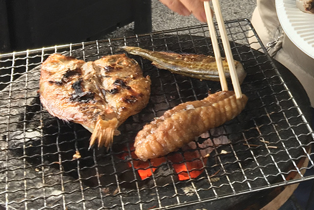 上左/炭火焼コーナー。ふっくらしたふぐ干物をはじめ、能登の食材を堪能できる。