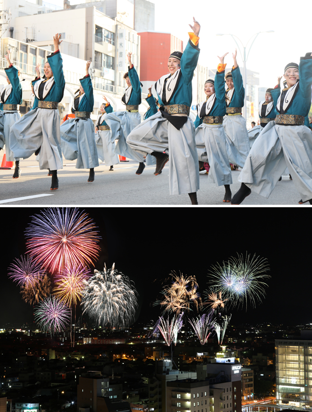 8月2日(金)には「福井フェニックス花火」が開催され、福井フェニックスまつりのオープニングを飾る。3日(土)には、涼しげな浴衣姿で踊る伝統の民踊と、夏の暑さを吹き飛ばすYOSAKOIイッチョライの演舞が中央大通りで繰り広げられる。4日(日)には、福井競輪場にて、バンドやバトントワリング、チアダンスチームなどが参加する「100万人のためのマーチング」が行われる。また、期間中は、福井のまちなか各所で協賛イベントも開催。福井の夏を彩る一大イベントで大いに盛り上がろう。