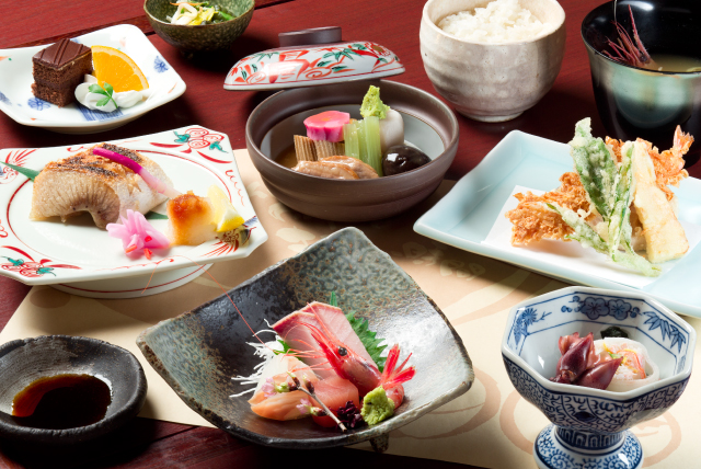 肉、魚、刺身から選べる主菜と、栄養バランスのよい二品の小鉢が並ぶ日替わりランチのほか、加賀料理の技を一品ごとに仕上げた御膳が人気。夜には地元の食材にこだわった名物のおでんを提供しており、街中では珍しく、カウンター、小上がり、個室、大・中宴会場が数多く揃い、幅広い対応ができる。