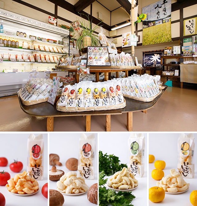 覚右衛門を代々襲名する小松の米農家。20代目が営む直売店では米はもちろん、こだわりの調味料、県産食材を練り込んだかきもち、オリジナルソフトクリームが人気。