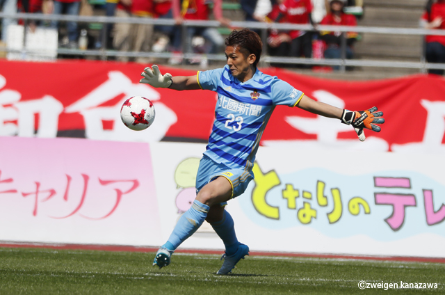 写真/今シーズン全ての試合でゴールを守る新加入の白井選手。(提供:ツエーゲン金沢)
