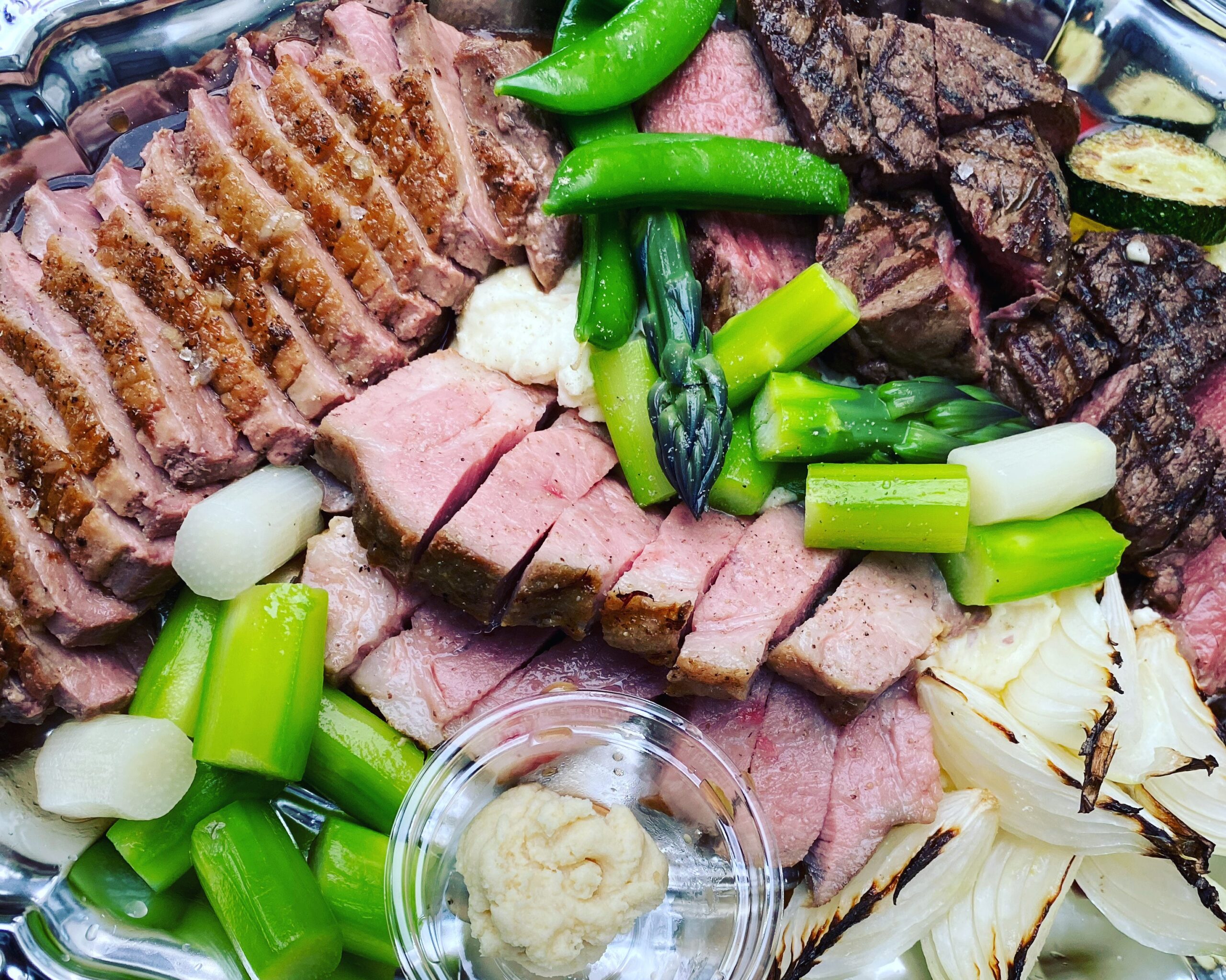 フレンチを基本にしながら、その時々の美味しい食材をシェフが一番だと思う調理法で提供する『林檎とわかば』。食材の意外な組み合わせや調理法、芸術性を感じる盛り付けなど、様々なプレゼンテーションに心が躍る一軒だ。現在「ノンアルコールでも楽しく食事できる」をテーマに新メニューを鋭意開発中で「お客様に楽しんでいただくためにできること」に常に全力投球。他にも自宅で楽しめるようにとボリュームたっぷりのお肉のアソートメントを用意。アンガス牛のヒレ、能登豚肩ロース、鴨ロースの盛り合わせに新鮮な野菜とレフォール(西洋わさび)がたっぷりと添えられた満足度の高い仕上がりとなっている。他のテイクアウトメニューも応相談とのこと。レストランでの食事の時間を恋しい気持ちを満たしてくれる贅沢なプレートをテイクアウトしてはいかが。
