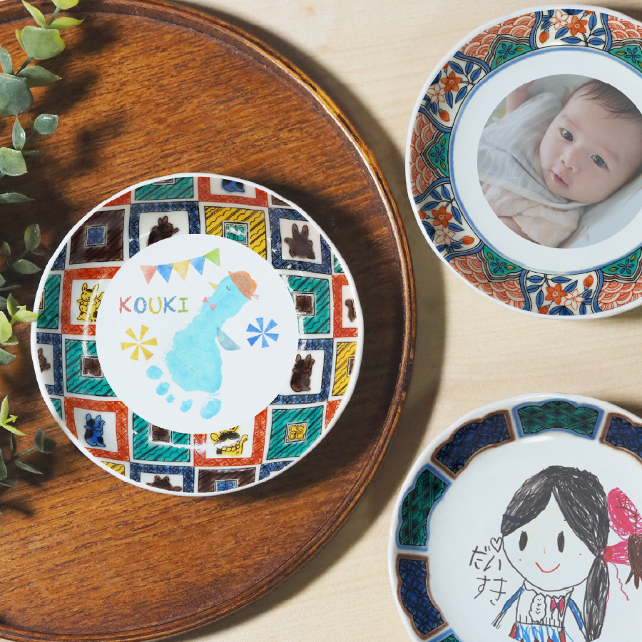 そんな『九谷結窯』のユニークな商品がこのオリジナル豆皿。ふちに伝統的な九谷焼の柄が施された直径12㎝の皿は3種類。好きな写真や絵をメールで送付すれば、中央の直径6㎝部分に転写され、世界に一つの九谷焼皿となります。なお、製作期間は約2週間。きちんと箱に入って送られるので、お孫さんのことが大好きな祖父母への敬老の日用ギフトとしてもおすすめです。