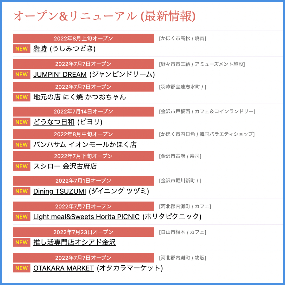【今週のNEWOPEN】7月の情報は20件!! 今話題の石川県内の新店情報はここでチェック☆
