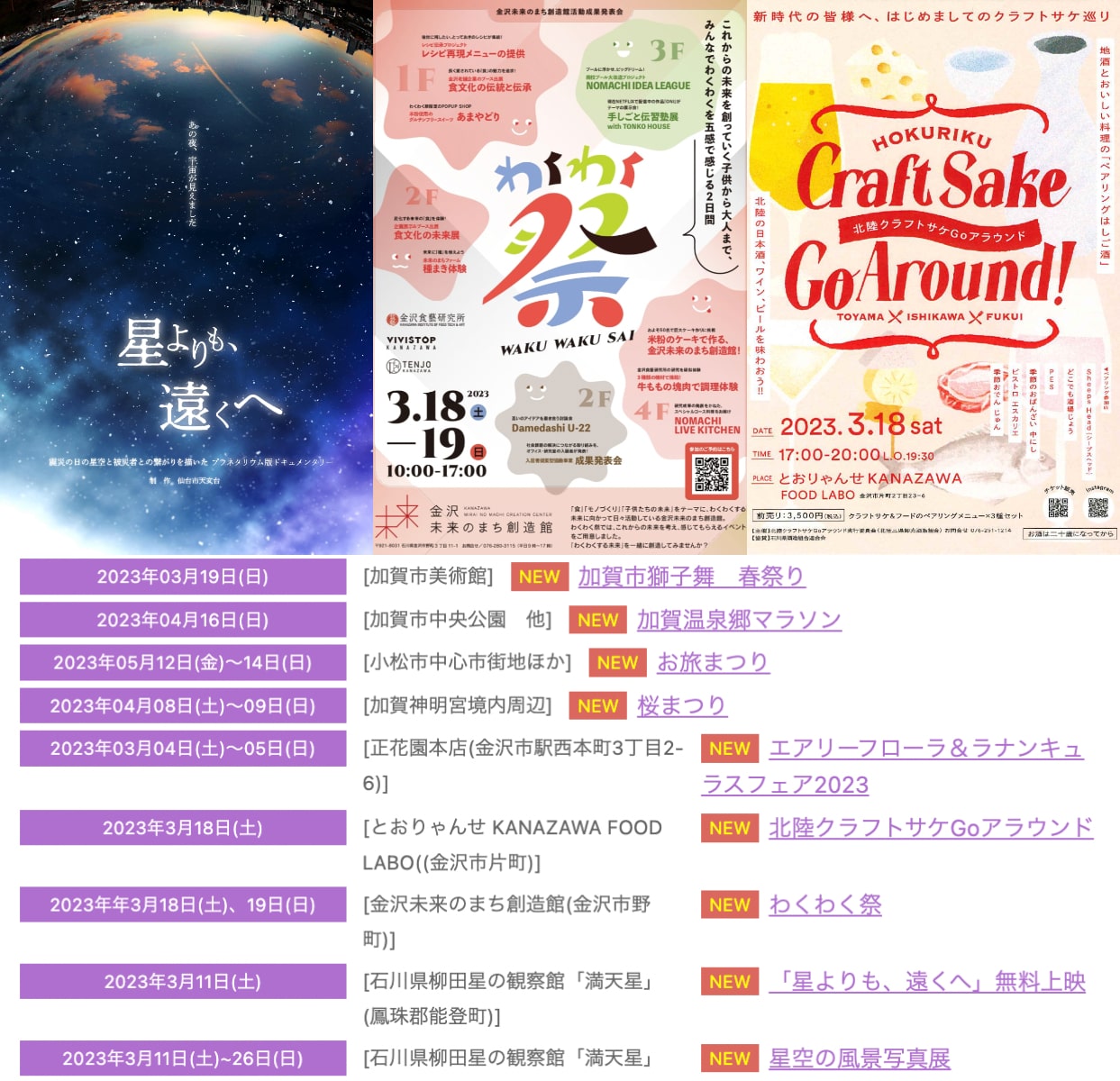 石川県を中心に最新のイベント情報を紹介しているコーナー「New Event」。