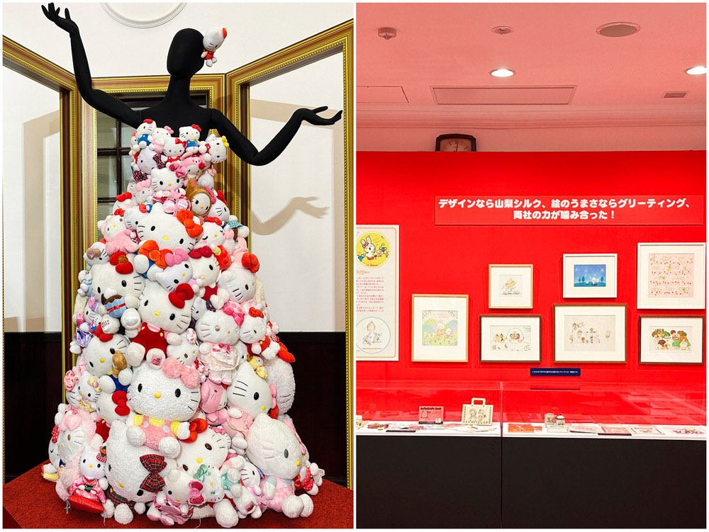 第二会場へと繋ぐ道には、サンリオの考えるキャラクターの定義を解説するコーナーや、米国サンリオのキティ誕生35周年記念イベントでレディー・ガガが着用の150個以上のキティぬいぐるみで作ったドレスのレプリカもあるので、お見逃しなく。