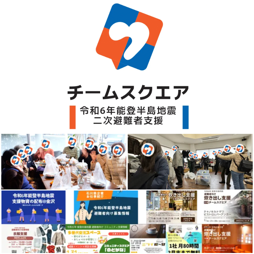 令和6年能登半島地震の発生からもうすぐ3ヶ月が経とうとしています。少しずつ日常が戻っていく中、まだ元の生活には戻れていない方もいらっしゃいます。能登各地から避難している二次避難の人たちなど、慣れない場所で生活をしている方々にはもちろん行政の支援の手が入ります。しかしどうしても行政では対応できないニーズが出てくるのも事実です。広域的な行政支援から抜け落ちてしまう困りごとを調査し、被災者・避難者の方々の「本当のニーズ」を確認しながら支援活動を行っているのが、民間の有志による任意団体『チームスクエア』です。刻一刻と変化する避難所や二次避難者の要望を汲み取り、必要な場所に必要なものを届ける物資の支援を始め、広いスペースでの温かい食事の提供、避難者同士がつながれるコミュニティ作りなどをしてきました。「最終的には能登に戻りたいけれど、当面の避難生活にはお金が必要」とする二次避難者へ向けた仕事の支援も行っています。履歴書不要、即採用可能な求人に限り、承諾を得た企業の求人情報を「イシカワズカン」の特設サイトに掲載し、生活再建へ向けた支援をしています。これらの活動はすべて、有志による自己資金で賄ってきました。今回、これからも中長期的に継続的な支援を行うため、Makuakeでの支援金募集を行っています。