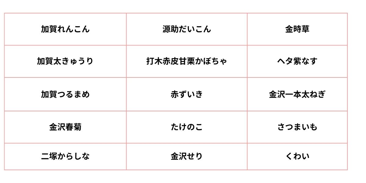 加賀野菜は「金沢市農産物ブランド協会」が認定した15品目の伝統野菜のことです。1945年(昭和20年)以前から栽培されており、現在も石川県金沢市を中心に栽培されています。