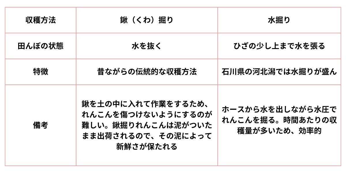 ◾️収穫方法:鍬(くわ)掘りと水掘り