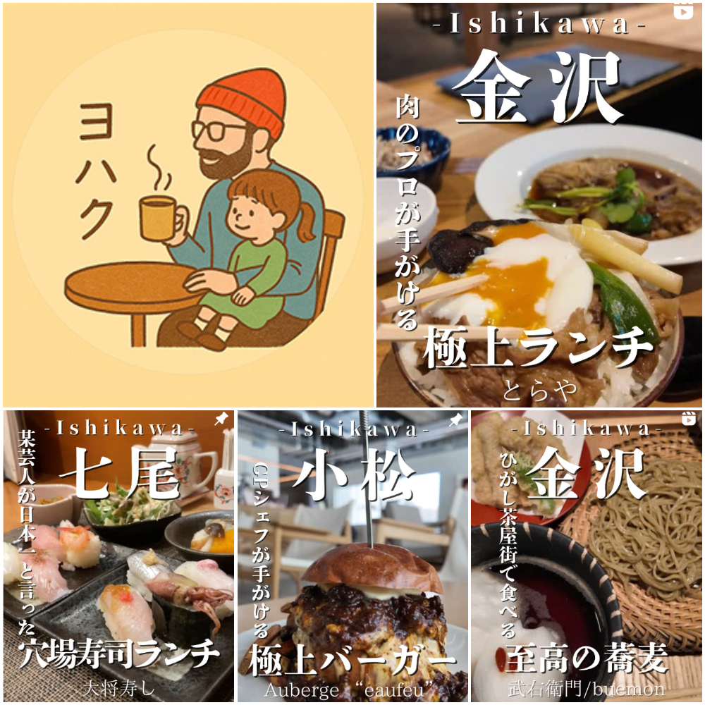 この他、定食や満腹メニューなど男性必見の情報がずらりと並ぶ「グルメブロガー ひで」さん、石川県の定番店や穴場店の情報に定評のある「はくさんグルメ」さん、インパクトあるラーメンに見ているだけでお腹が減る「石川飯スタグラム」さん、週末のおでかけ情報を発信する「はる夫婦」、相手が喜ぶ外さないデートスポットを教えてくれる「りみぽ」さん、トラベルフォトライターの「土屋香奈」さん、フリーアナウンサーの「徳前 藍」さん他、たくさんの方々がラインナップ。皆さんそれぞれ得意ジャンルが異なるので、各アカウントをフォローして、地元のおいしい店や素敵な情報をキャッチしてみてはいかがでしょう。