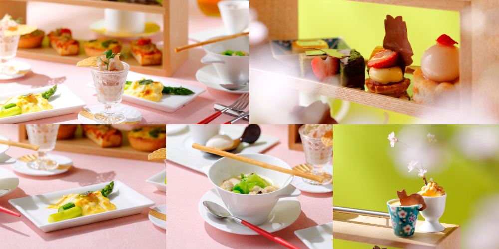 桜のサブレや桜フロマージュ、黒蜜クレームブリュレといった春らしいスイーツに加え、生どら焼きや加賀棒茶プリン、抹茶ブラウニー、マスカルポーネぜんざいといった金沢らしい和の雰囲気を感じさせるメニューがお目見え。また、セイボリーにもシラスのひとくちピザ、そら豆とイベリコベーコンのクワトロフロマージュキッシュ、春キャベツと浅利貝のポタージュスープ、アスパラガスのグラタンなど、この時期に旬を迎える食材を惜しみなく使っている。なおフリーフローのソフトドリンクは、ドイツ最高級品質の「ロンネフェルト」の紅茶やコーヒーなどを種類も豊富。空気が暖かく感じられるこの時期、街中をゆったり散策ついでに90分間のアフタヌーンティーでゆっくり休憩を取ってみては。