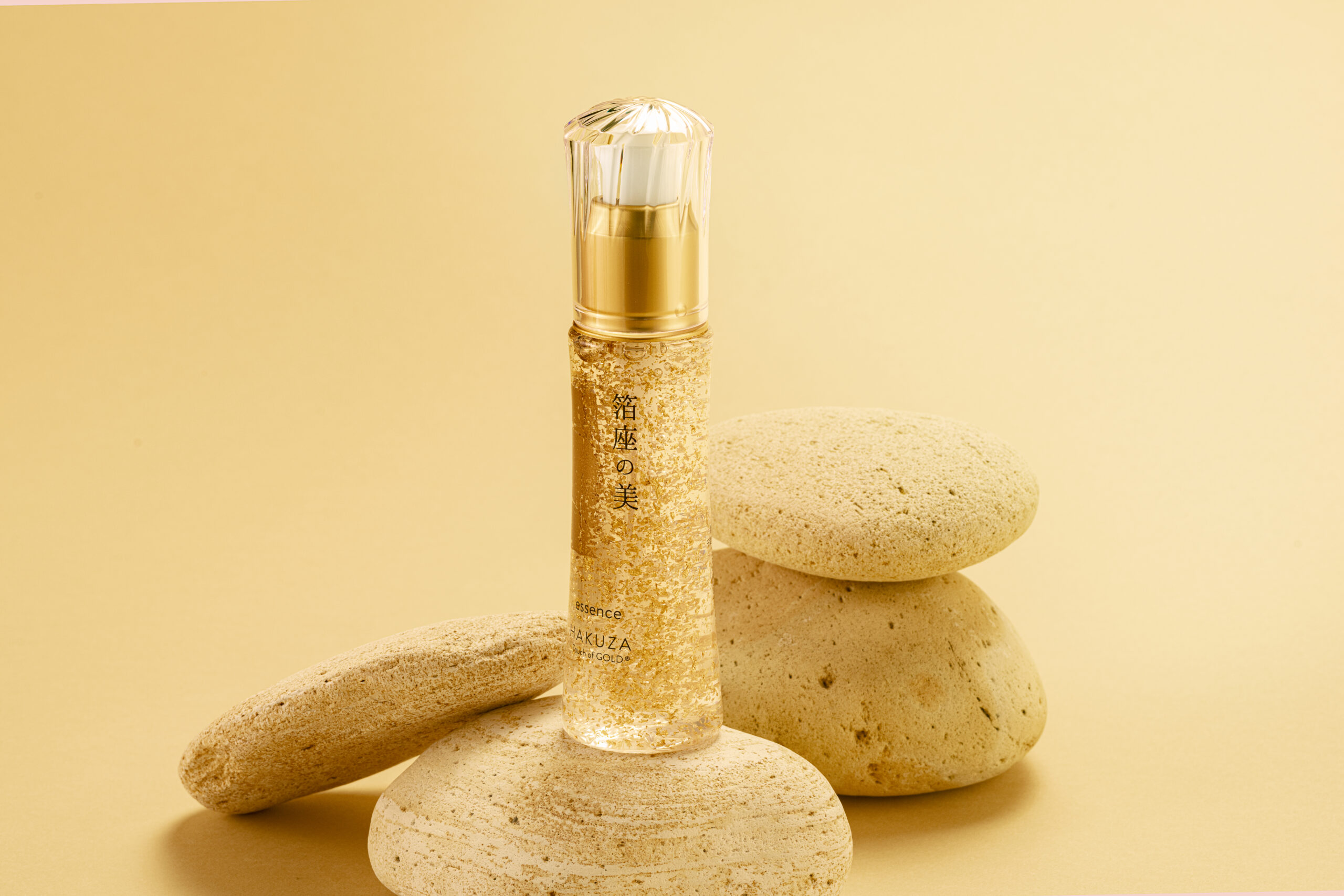 年齢を重ねた肌に嬉しい美容液「箔座の美 エッセンス」もおすすめ。肌への効果とやさしさを追求した、プラチナ配合の美容箔「プラチナ金箔」が配合されている。