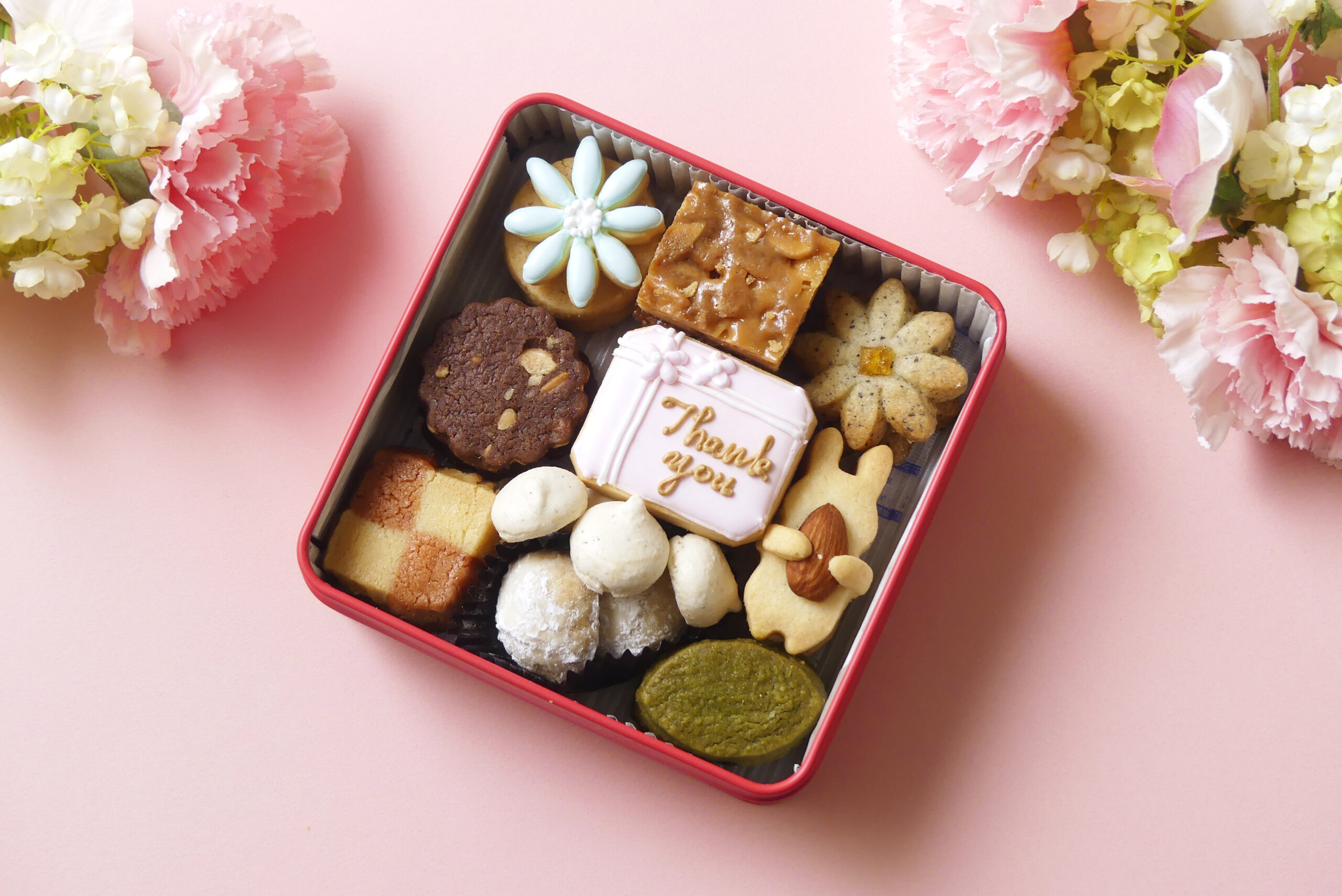 イチオシはしっとりスポンジでいちごやクリームを巻き、苺とブルーベリー、食用バラを飾った母の日限定の「ベリーサンキューロール」。贈りやすいサイズ感と華やかさが魅力の逸品。7種のサブレと2種のアイシングクッキーなどを詰め合わせた「サンキュークッキー缶」はギフトにもおすすめ。さらに、プチガトーにも注目。ピンクのグラサージュで華やかに仕上げた「苺のフロマージュ」、初夏にぴったりな爽やかな香りの「オレンジのフロマージュショート」、彩り鮮やかな「フルールドママン」など、選ぶ楽しさが広がるプチガトーも登場する。