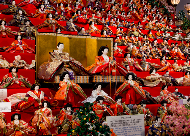 歴史ある江戸時代から現代までの雛人形が並ぶ。