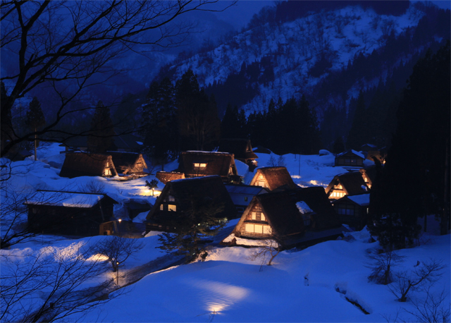 相倉合掌造り集落ライトアップ「雪原に浮かぶ日本の原風景」