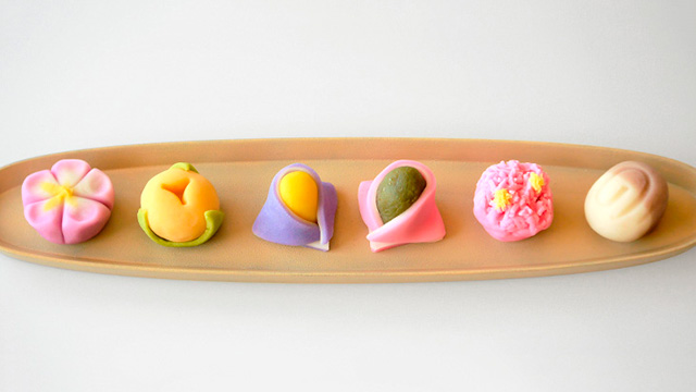 四季折々に色や形を競う風雅な和菓子の芸術品・上生菓子。金沢の老舗和菓子店『森八』では季節ごとに、創意工夫をこらした上生菓子を提供している。今の季節はひな祭りにぴったりの「橘」「おびな」「めびな」「桃の花」を含む6種が、桃の節句を華やかにしてくれる。暗い話題がつづく昨今、春らしいお菓子にふれてすごしてみてはいかが。