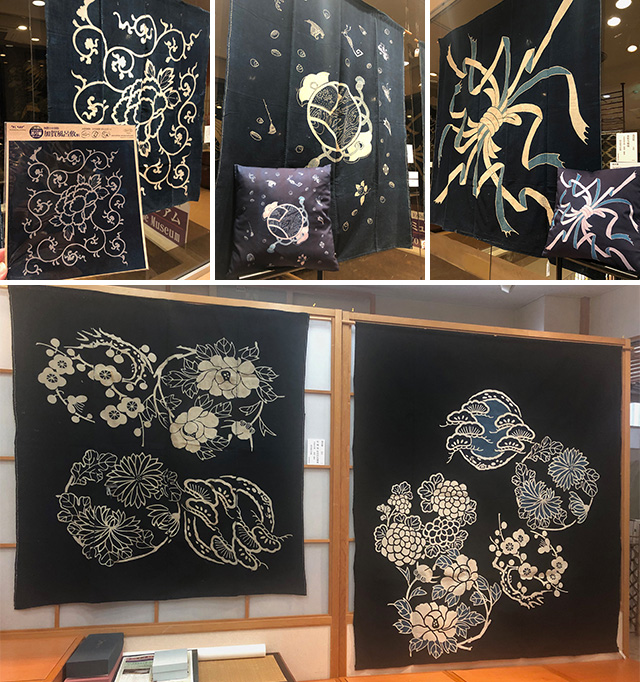 加賀友禅の店『ゑり華』の店主が、先代より引き継いだ江戸末期から昭和初期の加賀のお国染「花岡コレクション」。その中には200点以上の風呂敷がコレクションされている。今見ても斬新で大胆、繊細で美しい図柄を楽しむことができる風呂敷の図柄や色を『ゑり華』ではクッションカバー、クリーニングクロスといった商品として販売。