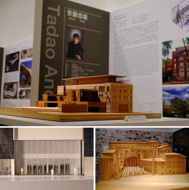 金沢建築館の名前である谷口吉生さんをはじめ、安藤忠雄さん、磯崎新さん、伊東豊雄さん、隈研吾さん、SANAA(妹島和世さん、西沢立衛さん)たちが今回の展示に際し、自ら一つの建築作品を選び、模型、写真、各ブース中央の展示パネル、ビデオを提供。建築はその土地の市民、文化、景観などに馴染んでこそ映えるもの。各建築のみならず街や人の美しい映像を眺めてすごすのもおすすめ。図面だけではわからない文化との調和など、ビジュアルを通してわかりやすく展示されるので、想像の羽を広げて、各都市を旅してみよう。