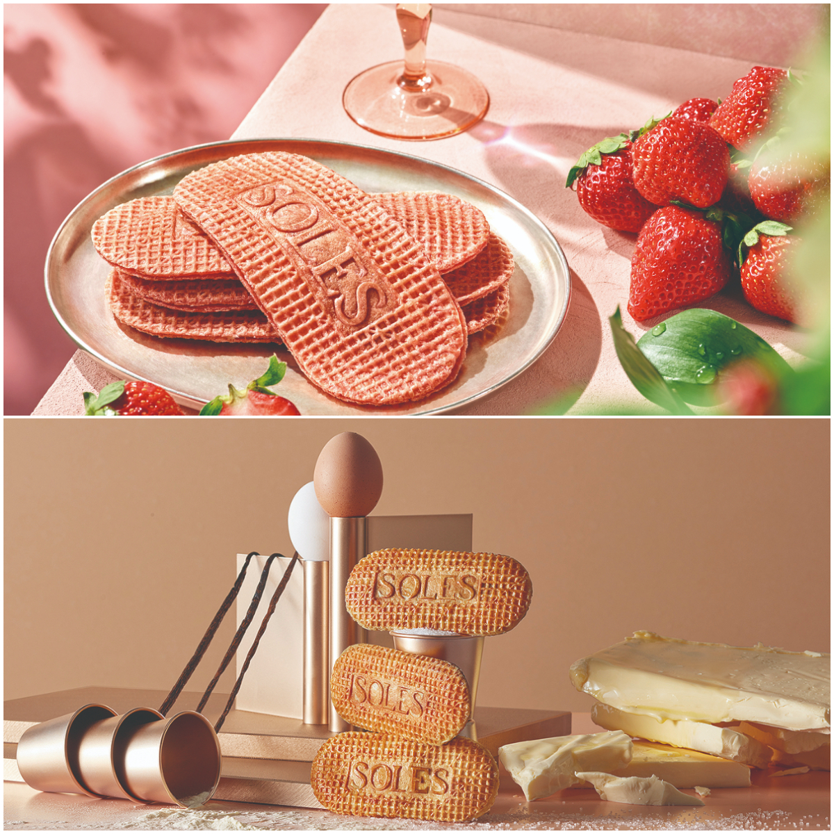 熱した機械にバターたっぷりの生地を挟み、高温で一気に焼き上げるフランスの伝統菓子バターゴーフレット。そのおいしさにインスピレーションを受けて作られたのがバターゴーフレット専門店『SOLES GAUFRETTE(ソールズ ゴーフレット)』の洋菓子だ。風味豊かな発酵バターと数種類の国産小麦粉を独自にブレンドし、もっちりとしながらも歯切れのよい独特の食感に。粒感の異なる3種類の砂糖をブレンドし、シャリシャリした食感が楽しめるバタークリームを合わせることで、日本人好みの軽やかな口当たりを実現している。