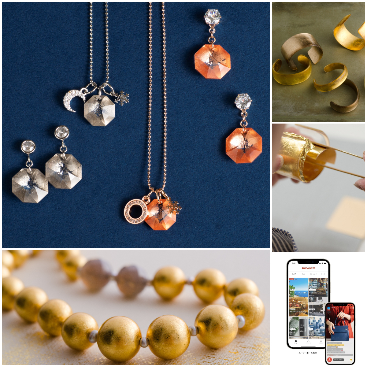 石川県においても『四十萬谷本舗』、『金谷酒造』、『烏鶏庵』、『金澤やまぎし養蜂場』、『ルバンシュ』など名だたる企業が参加中。11月25日(木)18:00〜は『箔座』の配信を予定している。国宝修復に欠かせない金沢伝統の「縁付金箔(えんつけきんぱく)」の技を受け継ぎ、守ってきた『箔座』。伝統的な技術と革新的なデザインやアイデアで、食器や工芸品、コスメ、食品など、様々な金箔製品を生み出し続けている。今回きらめきの「箔アクセサリー」をテーマに箔の美しさを身に纏うという楽しみ、金箔のほか、様々な箔それぞれの魅力を届けてくれる。クリスマスに向けての限定品も登場!詳細はRONGO配信をチェックしよう。