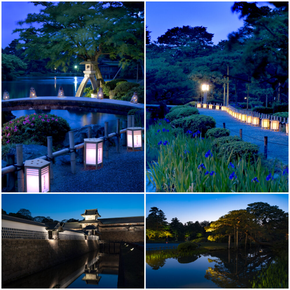 3年ぶりに実施される「金沢百万石まつり」に合わせ、「金沢城公園」や「玉泉院丸庭園」、「兼六園」の3か所がライトアップされるイベント「金沢城・兼六園四季物語 初夏の段」が開催される。金沢城公園では石川門や河北門、菱櫓(ひしやぐら)、兼六園では徽軫灯籠(ことじどうろう)などの有名な場所が照らされる上、ツツジ・カキツバタといった季節の花々も鮮やかに浮かび上がり、幻想的な雰囲気に。