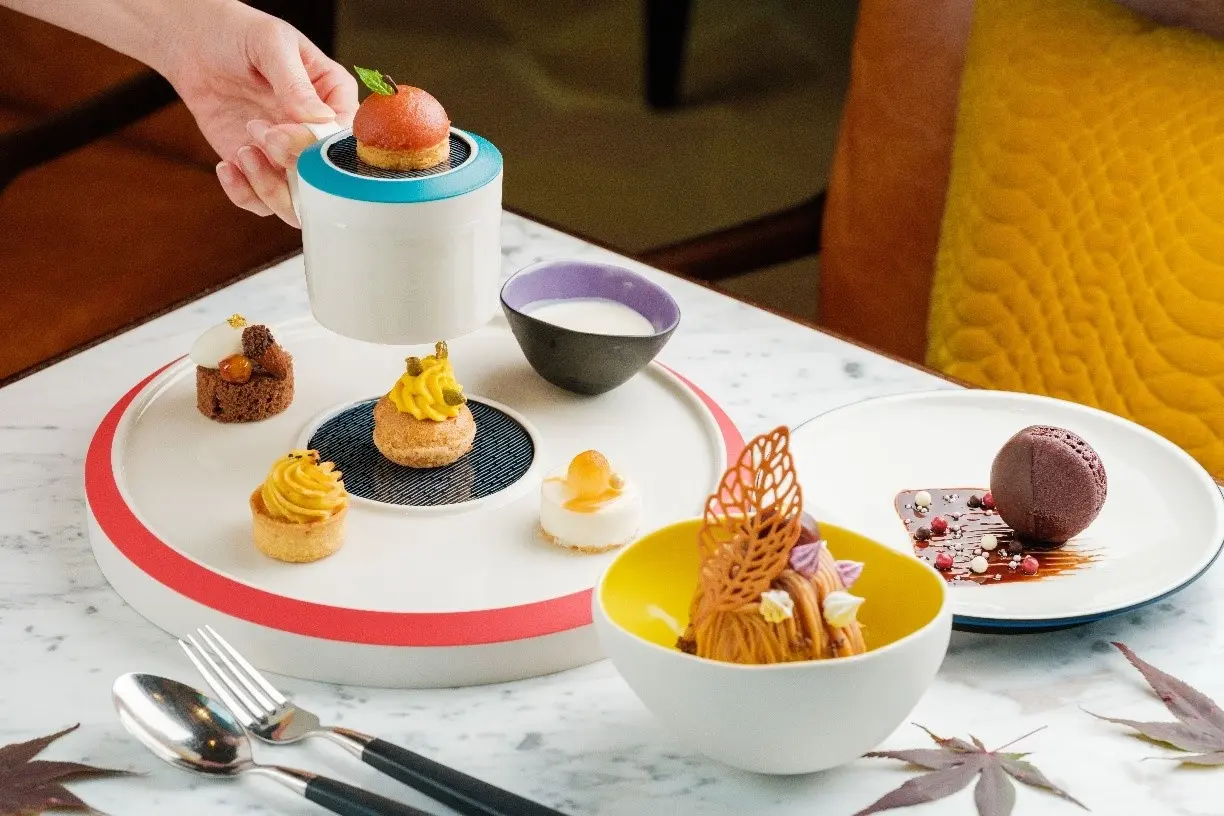「ハイアット セントリック 金沢」のオールダイニングFIVE – Grill & Loungeでは、この秋、催される「北陸工芸の祭典 GO FOR KOGEI」とコラボレーションし、季節の味覚を存分に味わえるケーキセットを9/1(木)〜10/21(金)の平日期間限定で提供する。昨年開催したGO FOR KOGEI 2021 特別展Ⅱ「工芸×Design 13人のディレクターが描く工芸のある暮らしの姿」で生まれたイギリスのキュレーター ブライアン・ケネディ×陶芸作家 中田雅巳によるテーブルウェアセットを用い、FIVE – Grill & Loungeの「5」と、五色の器の「5」を掛け合わせたその名も「5×5」なる、特別なケーキセットとなる。