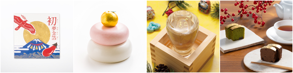 手軽に金箔を楽しめるアイテムのほか、おうちでのお正月気分を盛り上げる特別な置物も♪