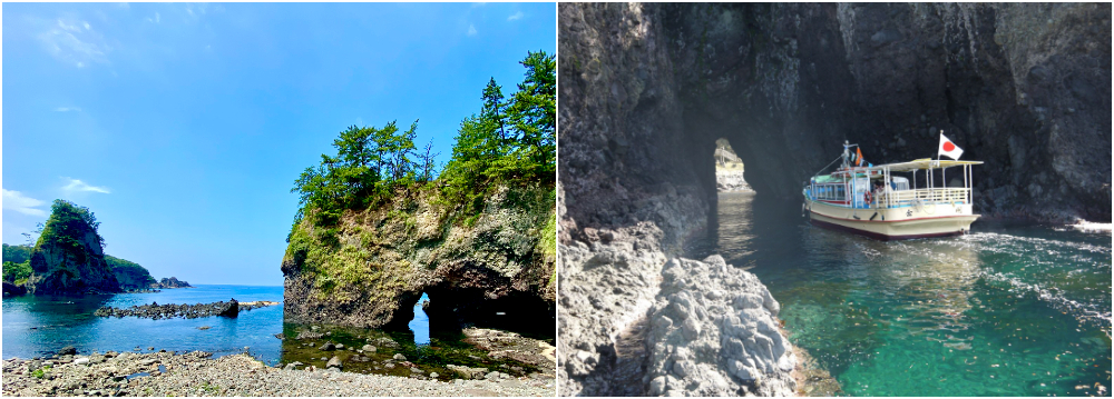 福浦港から関野鼻の海岸線は「能登金剛」と呼ばれる能登半島国定公園の代表的な景勝地。能登金剛遊覧船を利用して、能登金剛を海から観ると、陸からでは出会うことのない絶景が楽しめる。代表的な見どころには巌門、機具岩、ヤセの断崖、増穂浦の世界一長いベンチなどがあり、中でも巌門の岩に空いた大きな穴は圧巻。遊覧船では洞窟内の途中まで入ることができ、洞窟の岩壁に手が届きそうなほど近づくので、ちょっとした冒険気分が味わえる。船上では、間近でウミネコ(鳥)が見れるかもしれない。他にも、国内に現存する木造灯台の中で最も古い「旧福浦灯台」や、日本の小貝名所である「増穂浦海岸」なども歴史や自然が感じられるおすすめ観光スポットだ。ことに、晴れ渡る日の海の透明度は息を飲むほど。春や秋の平日は人が少なくキレイな海を独り占めできる日もあるので訪れるのに狙い目だ。海岸では、浜辺に打ち寄せる淡いピンク色のさくら貝を拾ったり、セグウェイやバギーを体験したりもでき海の魅力を存分に楽しむことができる。自然の威力と穏やかさを同時に感じられる、ここならではの自然体験が用意されている。