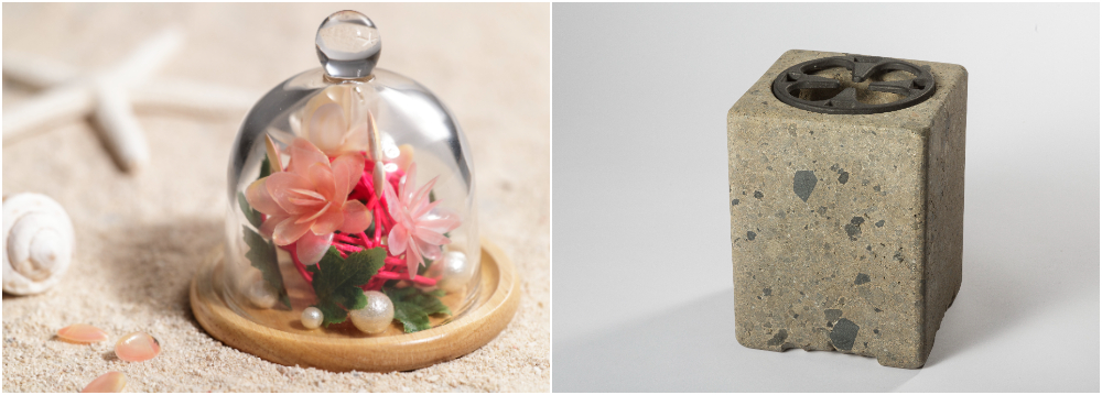 風土が育むのは美味だけではない。志賀町の美しさを閉じ込めたお土産にもぴったりの品々にも注目したい。人気の品には、増穂浦海岸の浜辺に打ち寄せられるさくら貝を使ったアクセサリーやオブジェ、志賀町大福寺で採取された大福寺石で作った火鉢などがある。日本海から吹く偏西風は「貝寄せの風」と呼ばれ、海が荒れて風が吹くと翌日に多くのさくら貝が増穂浦海岸の浜辺に打ち寄せられる。約1~2cmの小さな二枚貝は、開くとハート型にも見えることから志賀町では「幸せを呼ぶ貝」として親しまれており、ネックレスやイヤリングなどのアクセサリー、額装してオブジェにした華額、ジェルフラワーライト、などバリエーション豊かに作られている。大福寺石の火鉢は、日本文化のよさを味わえる温かみが溢れている。冬でなくとも、炭火で沸かしたお湯で茶を喫む、お餅やおにぎりを炙っていただくなどすればいつもの時間が豊かになること請け合い。どちらもそこにあるだけで、自然の優しさに心なごみ、日常に潤いが感じられる逸品だ。