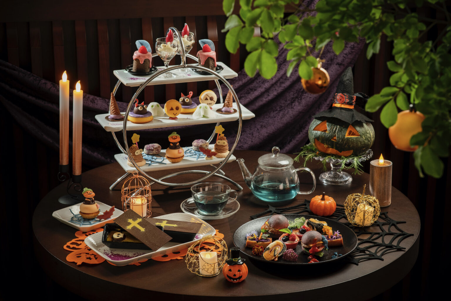 今年はジャックオーランタンやおばけ、魔女などをモチーフとしたパティシエの遊びごころが詰まったスイーツとシェフのセンスあふれるセイボリーが楽しめる。ホテルのラウンジで非日常の時間を楽しんではいかが。飲みものはフリーフローとなっており、ハーブ農園 ペザンの自然栽培農法による石川産ハーブを使ったホテルオリジナルハーブティー、香り豊かなTWGティーのフレーバードティーなどこだわりドリンクが種類豊富に用意されている。