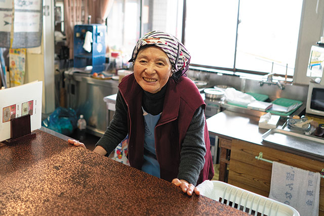 松本清張の小説『ゼロの焦点』の舞台として全国的に知られ、同名映画のロケ地として記念碑が立てられている能登金剛。その有名なスポット「巌門」が見下ろせる高台に、ポツンとドライブイン『ロードパーク女の浦』が佇んでいる。40年以上続くこの店を訪れると、笑顔で迎えてくれるのが岡本澄子さんだ。扱う海鮮には、強いこだわりがあり、知り合いの漁師さん達から海から上がったばかりの食材を仕入れているという。スープ作りに注力した「能登ラーメン」は、醤油スープに海鮮の塩気が溶け合い、互いを尊重しあう味わいになっている。「主人と共に長くやってきた店だから」とこれまでお世話になった人や店に来てくれる客を思い、丹精込めて料理を作る岡本さん。「いつまで続けられるか分からないけど、支えてくれる人のために」と話すその温かい人柄と人々を虜にする料理がここにある。