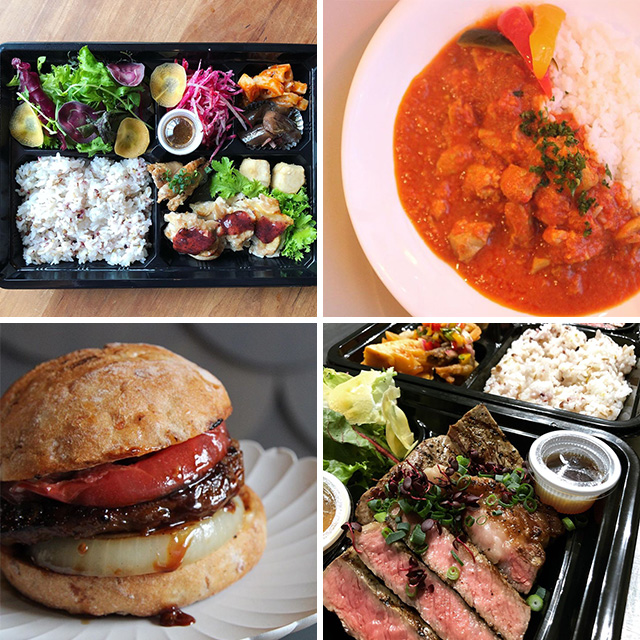 上左/ZUI ずい BENTO 上右/トマトベースのチキンカレー 下左/シンプルなハンバーガー 下右/熟成肉の牛ステーキ BENTO