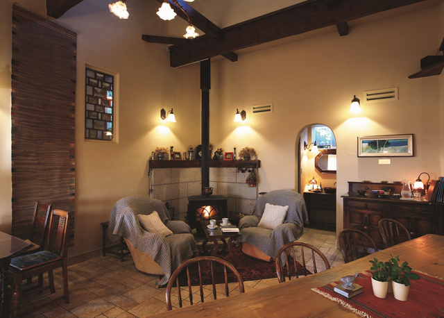 緑豊かな高台のフレンチレストラン『シェ・ヌゥ』に隣接するサロン。まるで西欧の田舎町に佇んでいる一軒家のような店内には、アンティーク家具を配した席や薪ストーブに面した特等席などがあり、窓外に広がる眺望も格別。大人の憧れが詰まったような空間だ。メニューは『シェ・ヌゥ』ならではの味を素朴な田舎風のスタイルで気軽に楽しませてくれる。ビストロ風の一皿や、パフェやタルトなどのデザートも充実。大人の上質な休息を得られる一軒である。