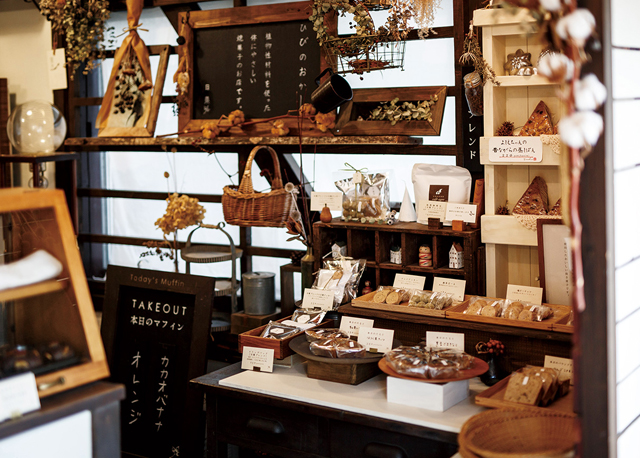 加賀市橋立に店を構える小さなテイクアウト焼菓子の専門店。「自分が食べたいお菓子を作っていたら共感してくださる方が多く、店を持つことになりました」と語る店主の小林さん。乳製品やバター、卵は使わず国産の小麦やなたね油、きび砂糖、豆乳などを使いマフィンやスコーン、タルトなどの焼菓子を作り上げる。菓子ごとに使い分ける季節のフルーツやナッツも絶妙なアクセントになっている。