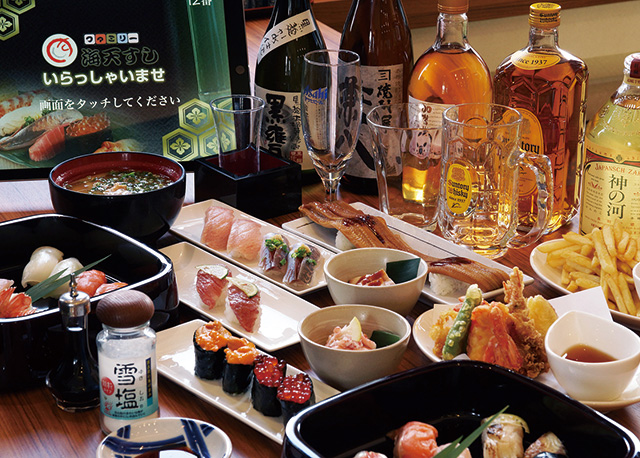 イオン小松店そばに、2018年夏リニューアルオープン。店内はカウンター席や小上り、ボックス席、個室感覚で使えるテーブル席などがあり、家族の食事やママ会、小宴会など、目的に合わせて利用できる。メニューは、すしをメインに、一品料理が充実。「一本穴子」など、名物すしも健在。地酒や焼酎、デザートも豊富。その日のよいものを揃えた「本日のおすすめ」にも注目。注文はタッチパネルで行うので、気軽に頼むことができ、作りたてが席まで届く。