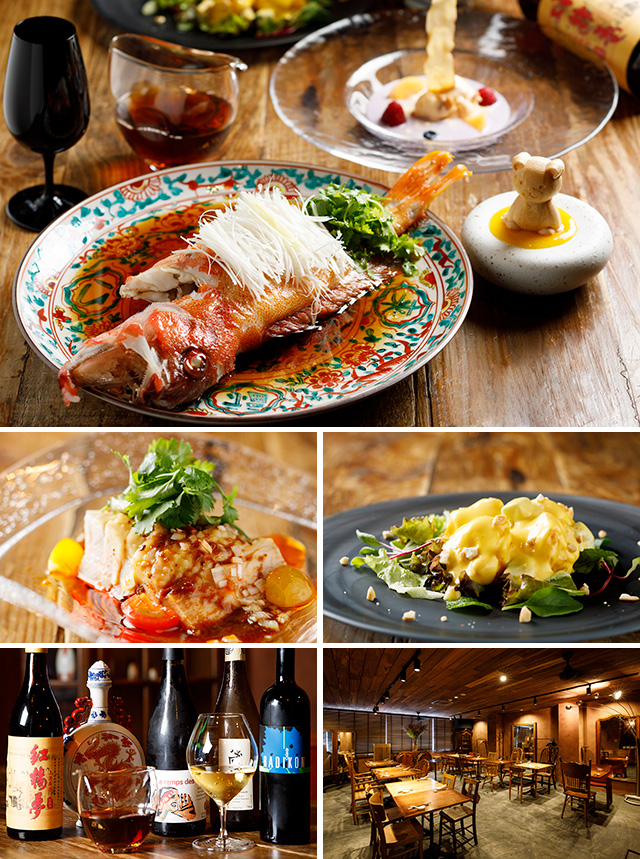 味はもちろんだが、見た目にも美しい料理にも注目してほしい。皿は作家ものを中心に揃え、くまの形の最中の中に紹興酒でマリネしたフォアグラテリーヌを詰めた「フォアグラくまさん最中」490円など遊び心溢れるメニューが豊富に揃う。
