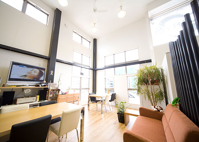 J-POPが流れる、カフェのような店内。気持ちよく車選びや愛車の修理点検ができる。女性目線のサービスが特徴で、予備知識が少ない人への懇切丁寧な車選びはもちろん、購入後半年間は無料で修理、さらにオイル交換をすれば12項目の点検が無料になるなど、充実したアフターも魅力。明るいスタッフたちも頼りになる心強い店だ。