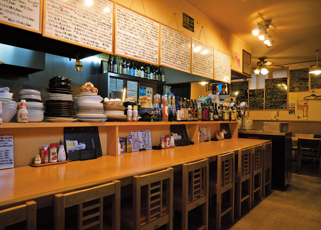 諸江町の人気店『いな葉村』。メニュー数は300種類を超え、和食はもちろん、イタリア、スペインなど様々なテイストの料理で楽しませてくれる。店主の稲葉幸平さんは、全てのメニューを一人で調理しながら新たなメニューも生み出している。素材の掛け合わせや調理法はもちろんのこと、油だけでも8種類を使い分けるなど自家製のタレやソース、調味料にも並々ならぬこだわりを見せる。「お客さまには、満足してもらいたい」と豊富に揃える酒とも好相性の料理は、ボリュームも満点だ。