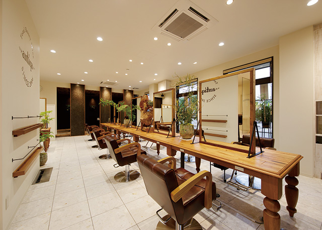 「五感に響くサロン」をコンセプトに、施術や接客はもちろん、心地よい空間づくりも徹底する注目ヘアサロン。薬剤はオーガニックからケミカルまで揃え、豊富な知識を持ったスタッフが一人ひとりの髪質や要望に合わせて最適なものを提案してくれる。また、肌・頭皮診断も行っており、的確なケアをアドバイス。髪だけでなくトータルに素材美を追求し、それを活かす施術を提供している。