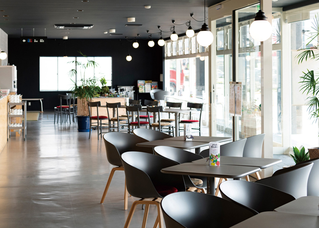 モノトーンを基調とした落ち着いた雰囲気の館内は、広い窓が開放的な飲食スペースが設けられており、外を眺めながらゆったりと過ごせる。併設する自家焙煎の『マウニコーヒー』では注文ごとに豆を挽いてコーヒーを抽出。香ばしい匂いで気持ちをリラックスさせてくれる。直売所コーナーには庄川清流温泉の源泉水を与えて育てた「庄川おんせん野菜」をはじめ、四季折々の農産物が並ぶ。特産品のゆずや生姜などを使ったグルメが数多く揃うが、4種類の「よごし」が楽しめる「よごし丼ランチ」はぜひ一度味わって。