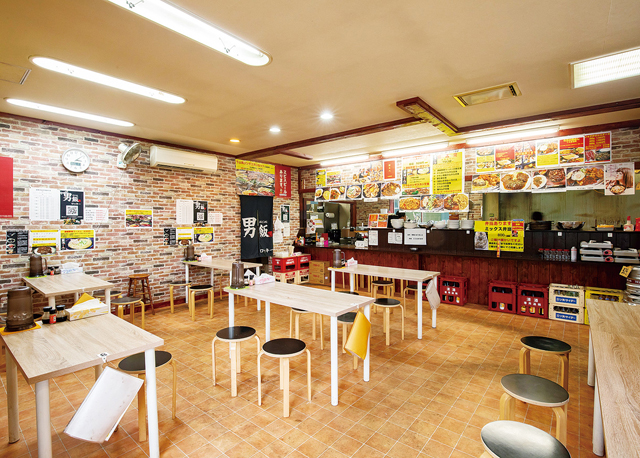 店名に相応しい肉メニューの数々が話題を呼び、県内外から訪れる人も。質の良い肉を手頃な価格で提供できるよう品種や部位ごとに仕入れ先を分け大量に仕入れる。スープやソースに至るまで手作りで味にも妥協を許さない。シェアして食べることもでき、定食のごはんや一部の丼に無料でカレーをかけることも可能。混雑時は少々時間がかかることもあるが、料理が現れた時の驚きは体感する価値ありだ。
