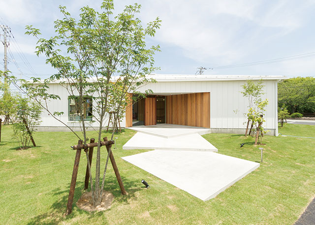 野々市市御経塚にショップのような平屋の素敵な建物が登場。今、分譲住宅「タテウリッチ! 」が評判の『丸吾建設』の新社屋だ。形状もユニークだが、中はコワーキングの思想を採りいれた最新のオフィス環境にも注目。同社の先進性がよく表れていると話題である。