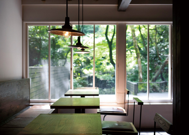 自然の光が優しく差し込む店内は、落ち着いた雰囲気。使い込まれた床は、軋む音さえ愛おしい。窓には磨りガラスといった趣のある昭和ガラスが使われており、自然をそのまま眺めるのとは違った、柔らかい印象を与えている。