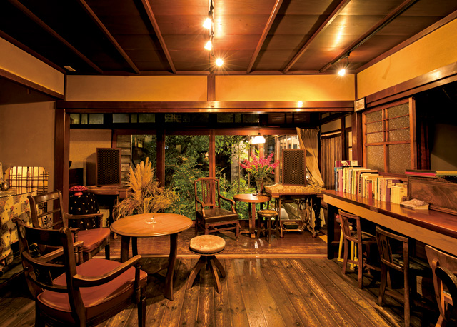 住宅街の小路にひっそりと佇む一軒家。山野草が茂る箱庭を囲む間取りや建具の装飾など、築100年を数える建物は、往時の様子を色濃く想像させる。スタッフの制服であるレトロなワンピースや、繊細なフォルムが美しいクリスタルカットグラスなど細部に至るまで店主・かをりさんの一貫した美意識で整えられ、時をこえて存在する物たちが静謐な世界観を心地よく紡ぎだしている。