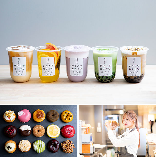 きな粉・黒ゴマ、ベリーベリーカシス、ビターチョコ&フレンチラズベリー、七山レモンクリーム、マンゴー&パッション他、チャノキカナザワ限定「加賀棒茶」「五郎島金時ポテト」「チャノキ金箔ドーナツ」あり