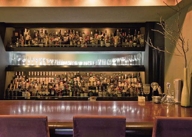 バーテンダーの石地孝一さんが日々市場で仕入れる果物や野菜を用いたカクテルが評判。自家製の和栗ペーストを用いたデザートさながらのカクテルを看板に、チョコレートとあまおうを合わせたカクテルやカボチャやサツマイモなどを用いた一杯も人気。よりたくさんの人にバーという空間に親しんでもらいたいと、ノンアルコールカクテルも充実させる。バカラやリーデルなど、デザインも口当たりも魅力的なグラスが、上質な時間を約束してくれる。