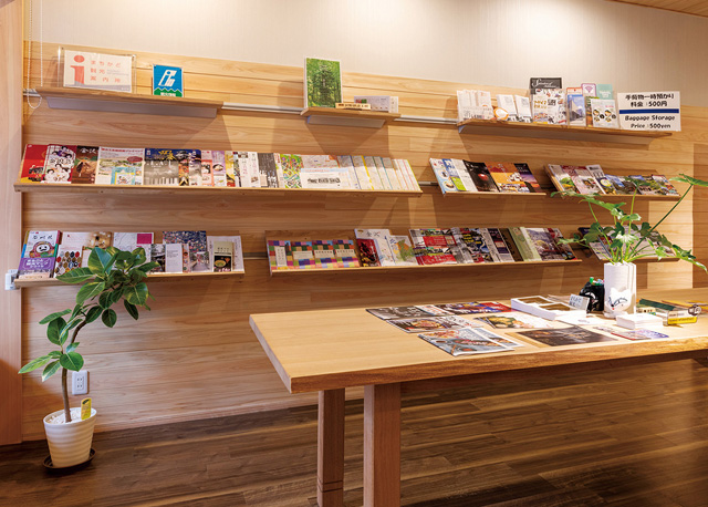 ●店内では、ツーリストのためのお茶、コーヒーのサービスが受けられる他、インターネットでの閲覧、携帯の充電も無料で利用可能。また、出し入れ自由な手荷物預りサービスも1日500円で利用できる。貸し傘なども用意している。