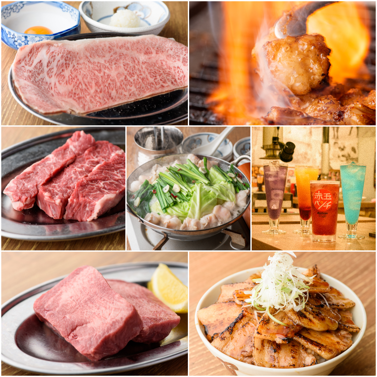 おすすめは本店直送のA5ランク・厳選黒毛和牛のサーロインや極上カルビ、赤身などの極上肉。その他、秘伝の味噌タレに付け込まれ、炙るとコラーゲンのとろける食感が堪らない「和牛大トロホルモン」や、魚介と鶏ガラの合わせスープでいただく「極上もつ鍋」、牛・豚の希少部位など、ホルモンメニューも充実している。また、牛肉コロッケやミンチカツ、から揚げ、ハンバーグといったお肉屋さんならではの肉惣菜メニューも豊富で、お土産としてテイクアウトも可能。〆のご飯&麺類も揃っている上、昭和レトロな店内にはお座敷席も完備しており、子供連れの家族も利用しやすいという。